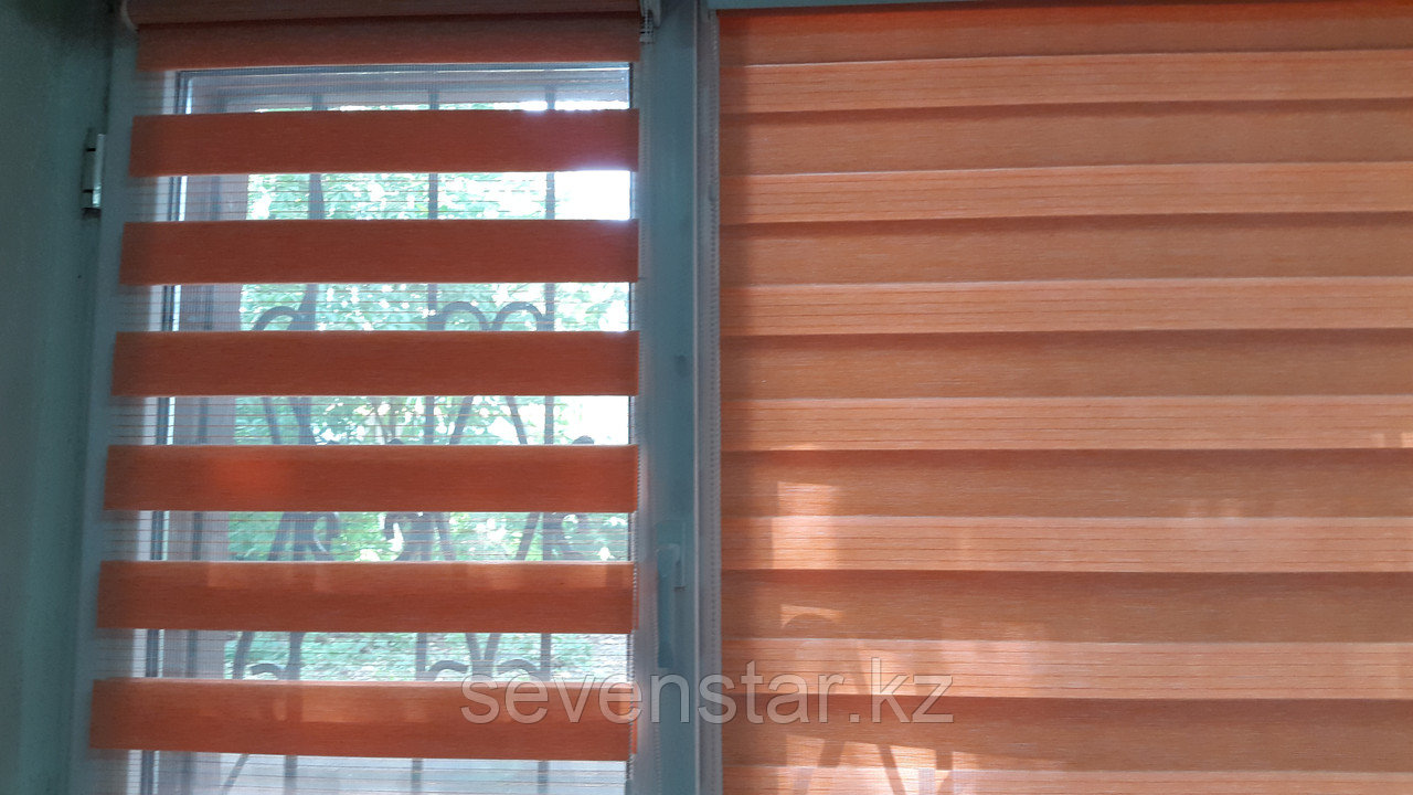 Рулонная штора "Зебра" (День и Ночь) ― двойная рулонная штора, состоящая из ткани с чередующимися полосами из прозрачного и непрозрачного материала, а также расположенная в два слоя. Такая штора при подъеме и опускании постоянно смещает полосы ткани относительно друг друга, что позволяет менять освещенность комнаты в зависимости от расположения этих полос.Купить оригинальные рулонные шторы в Алматы вы можете в интернет-магазине «Seven7Star» с возможностью дальнейшей установки изделий на вашем объекте. Высота одной единицы полотна может быть абсолютно разной, всё зависит от требований заказчика.